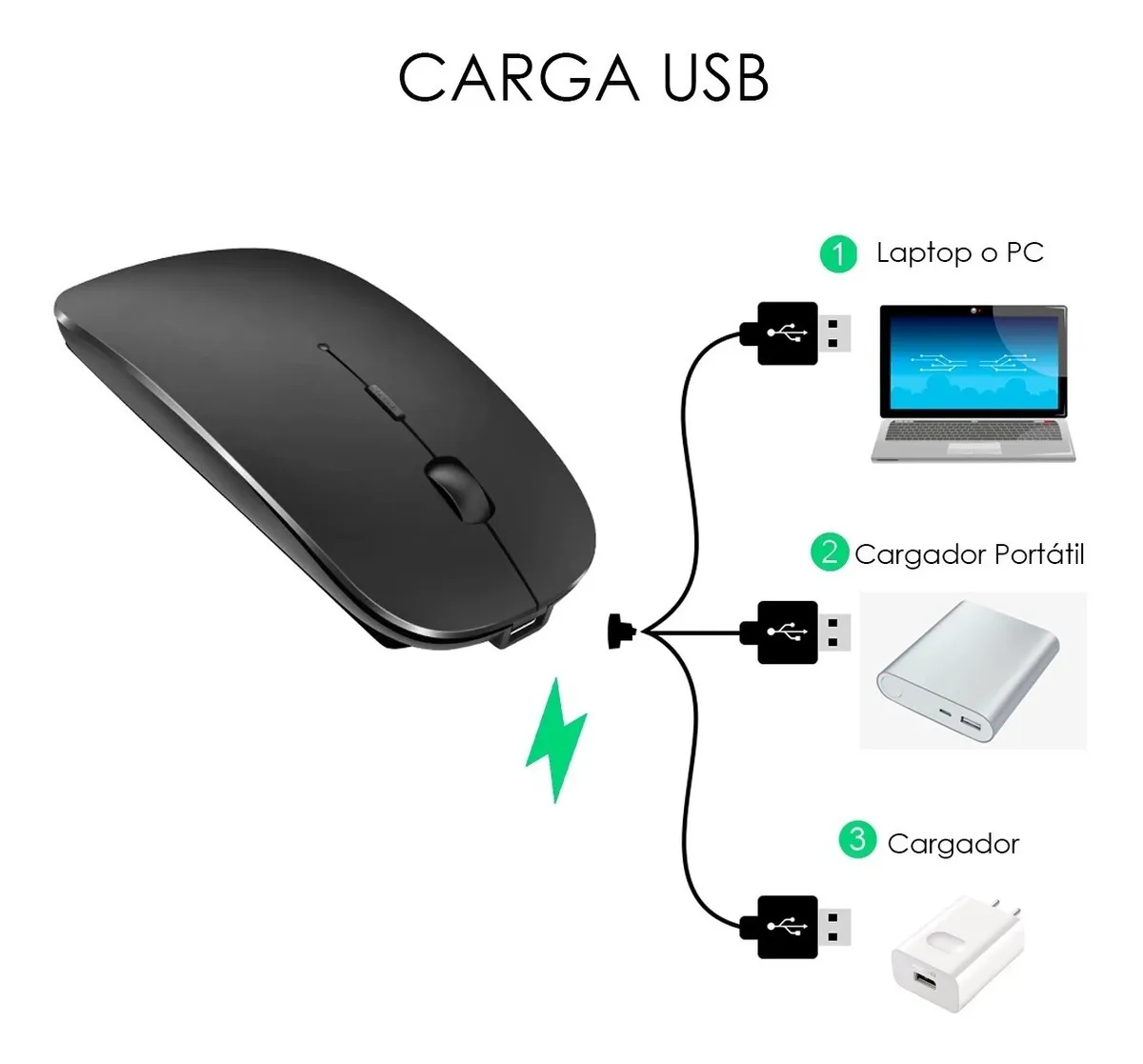 Mouse Inalámbrico, Recargable, Delgado y Silencioso