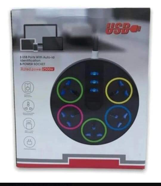 Multicontacto 5 Tomas De Corriente y 3 Puertos Usb